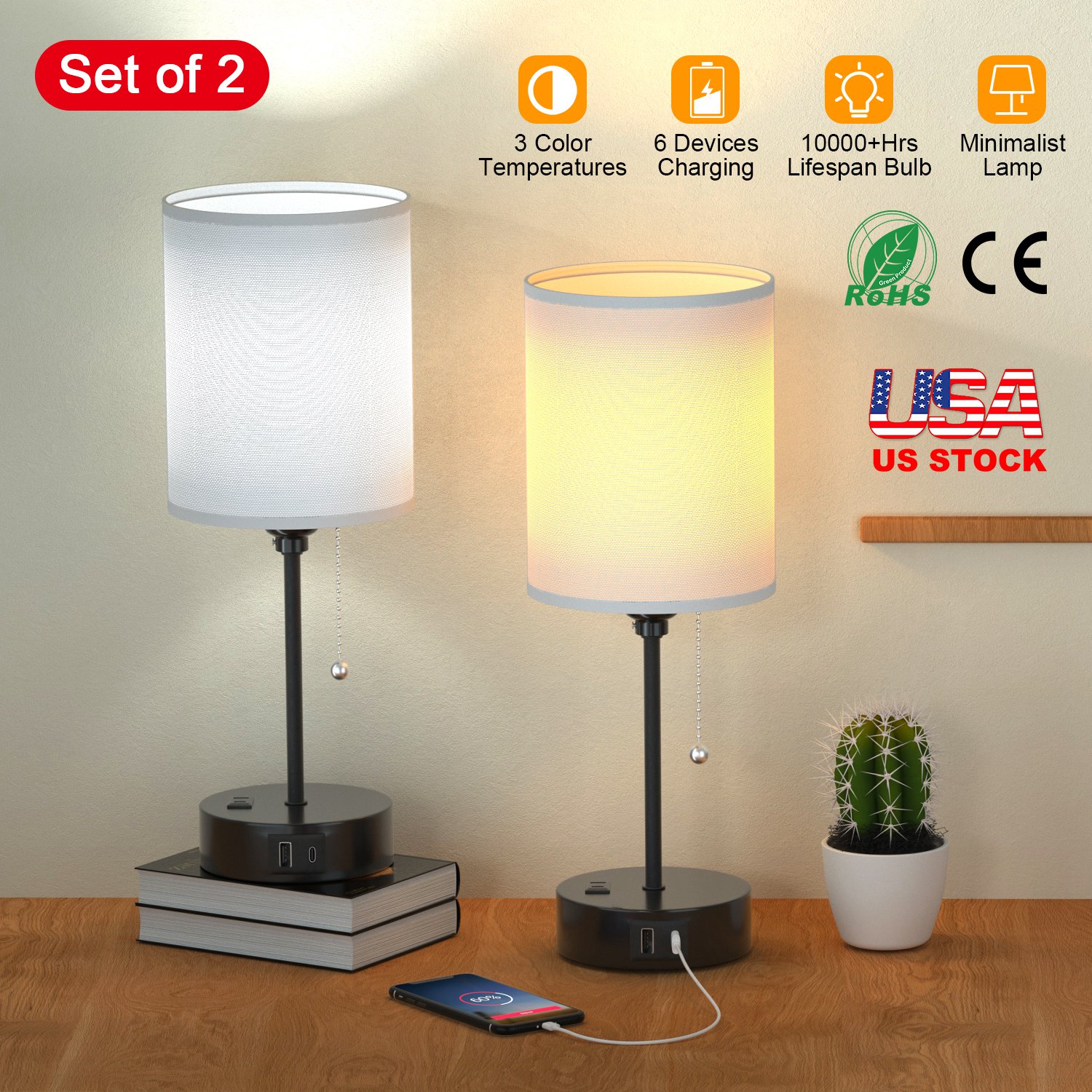 A nice bedside lamp is an easy way to cozy up your bedroom and set the right brightness for reading, work and sleeping. The decorative bedside lamps set of 2 combine classic color- white and black, set nicely with any home decor. Come with USB ports and outlets, you don\'t need to worry your phone run out of power and miss the morning-alarm clock and late for work or lacks of charging plugs. Kid-friendly pull chain turns on/off the bed light efficiently. 3 Color temperatures meet your various needs.