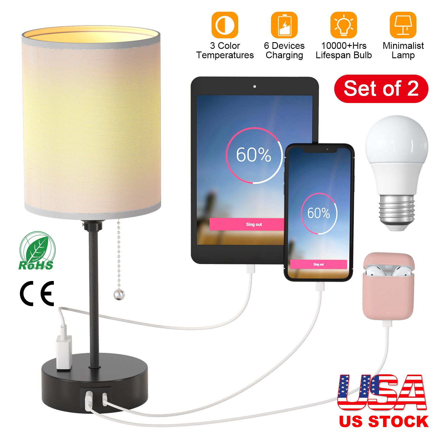 Home > 2Pcs Beside Lamps for Bedroom 3 Color Modes Nightstand Lamp USB C+A AC Output Ports Pull Chain E26 Bulb Light