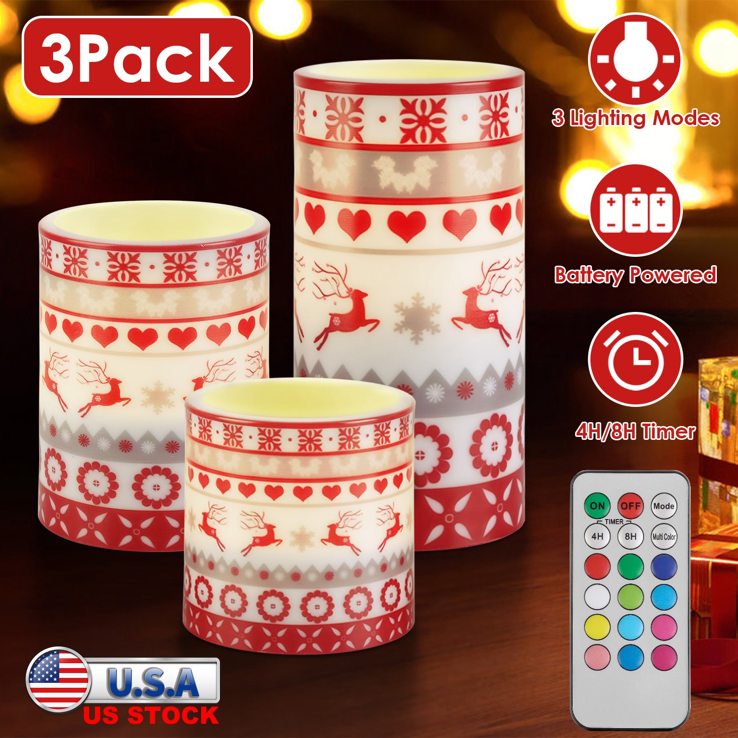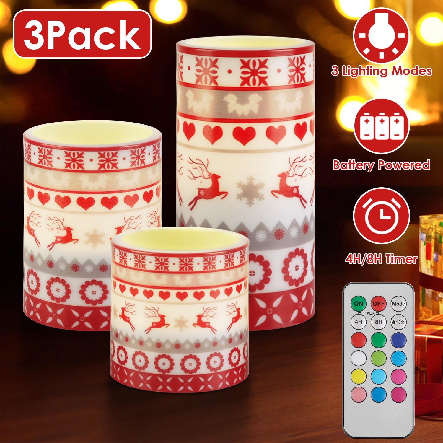 Home > 3Pack Christmas Flameless LED Candles Deer Flickering Candle Lights Pillar Candles with 3 Lighting Modes Timer Remote Control