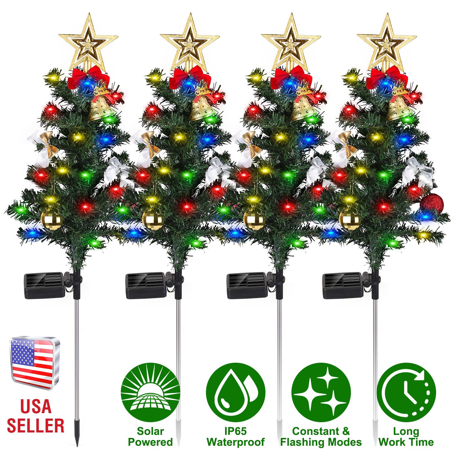 4Packs Solar Christmas Tree Lights Xmas Garden Decorations Tree Stake Lamp 20LEDs Solar Decor Light with Constant and Flashing Mode for Pathway Yard P
