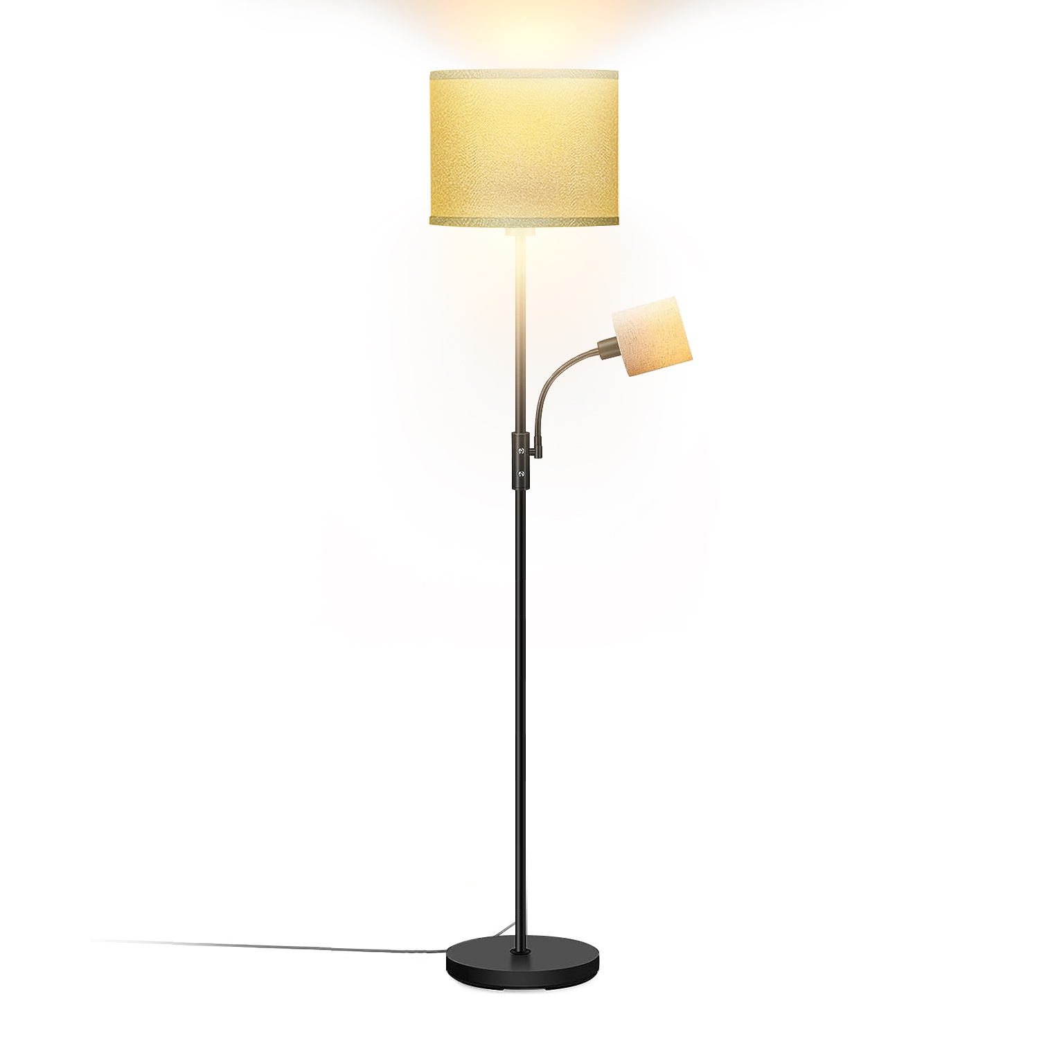 Our floor lamp comes with 2 heads, one as main illumination lamp, another as reading light, which is not only a multifunction lamp, but also a stylish decoration and ideal new home gift. Adopt E26 bulbs, this standing lamp with linen shade emits 3200K warm yellow light, glowing up soft, eye-protection and gentle brightness. Weighted metal base performs great durability and stability, safe for children and pets in daily life. Easy operation and installation are convenient and considerate, a perfect floor lamp for living room, bedroom, office and so on.