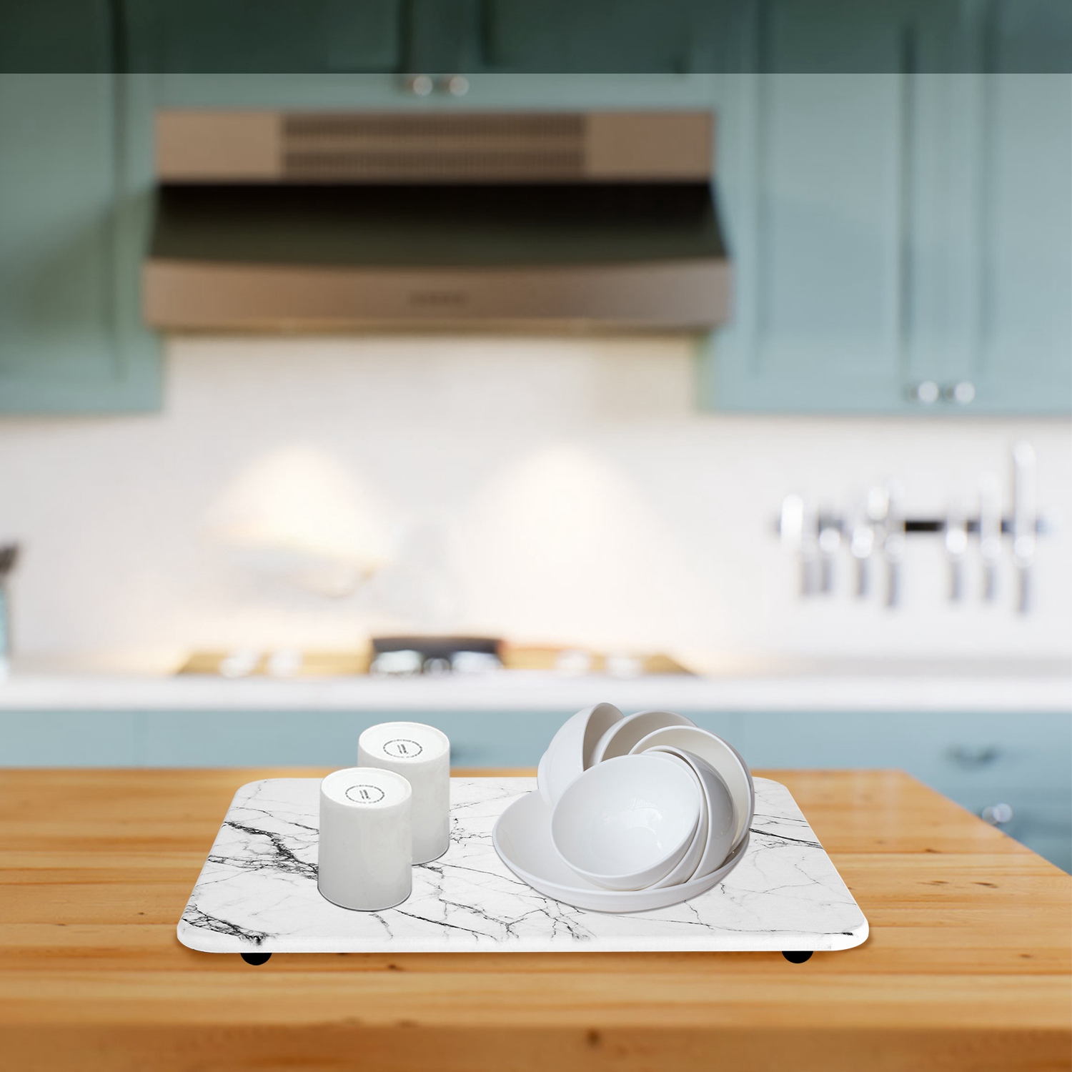 Constructed with premium diatomaceous earth with exceptional absorbency, our stone dish drying mat is able to absorb residual water on the tableware and quickly evaporate water from the surface in about 30S, keeping the sink area clean and tidy. Come with 2Pcs in package, non-slip and heat resistant up to 1000℃/1832℉, widely used for dish rack mat, stone bath mat, hot pot pad, pet feeding mat etc.. Feature marble texture and 11.81x15.75in large size, suitable for most kitchen ware and tableware. Easy to clean. An considerate gift for wife, girlfriend and mother!