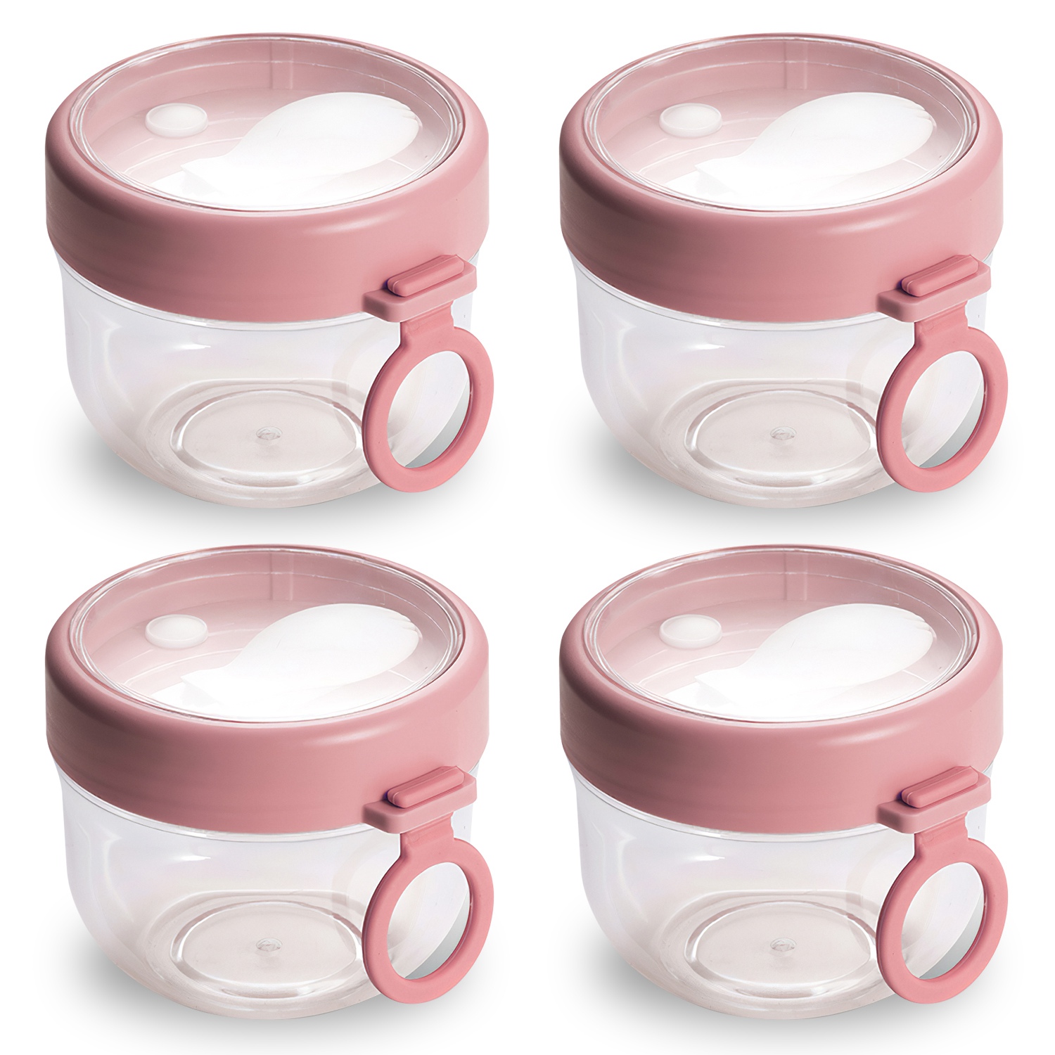 Each oat container is designed to hold about 600ML/20OZ of your homemade overnight oats, 4Pack oat container set made from premium PC material is perfect for providing a nutrient-rich and low-calorie breakfast solution for your whole family breakfast. Foldable spoon on the lid is convenient for eating on the go without carrying an extra spoon. Secure seal circle is leak-proof, ensuring freshness and flavors of inside meal while preventing spills. Suitable for overnight oats, yogurt, parfaits, simple salads, milk, smoothies, nuts and more.