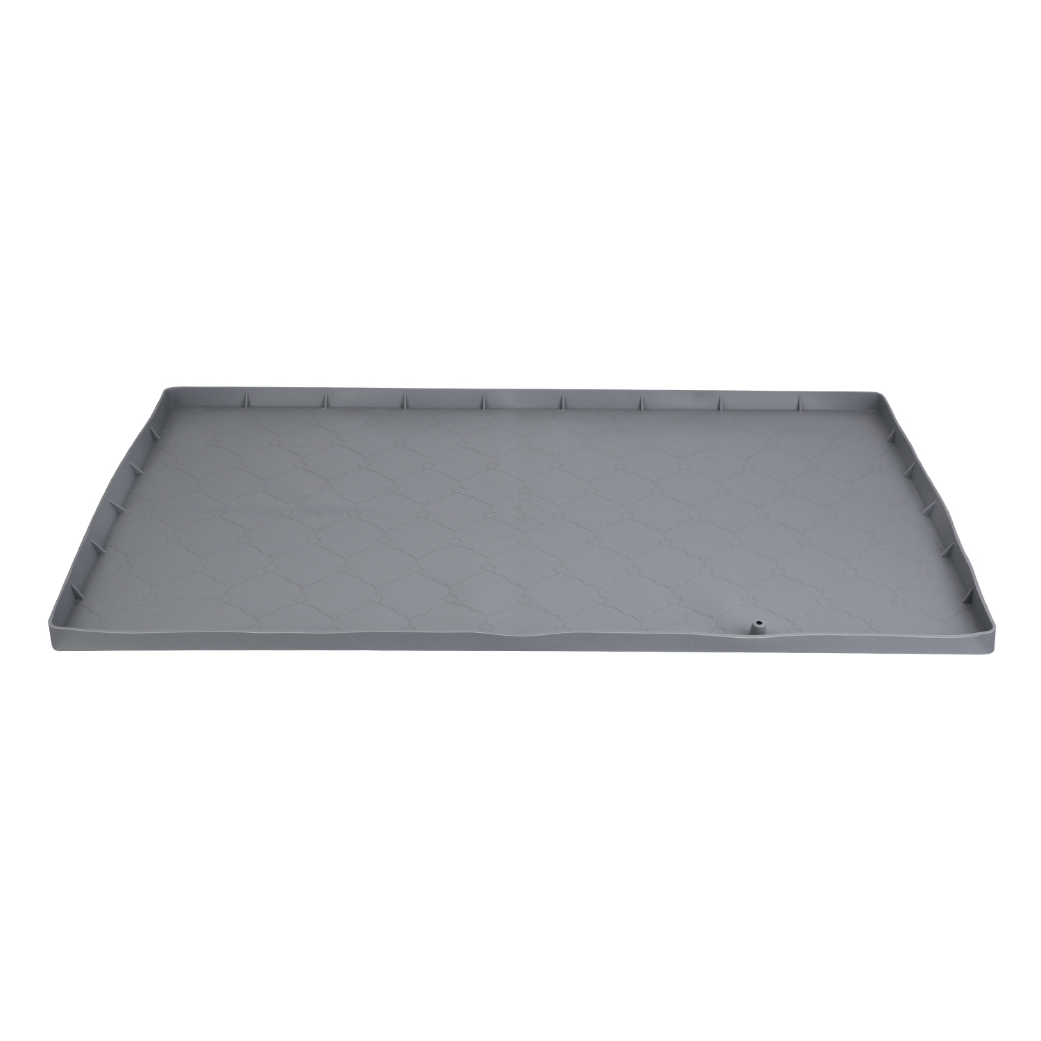 Made of environmentally friendly silicone, our under sink mat provides a secure and slip-free area for you to place your cleaning supplies or kitchen tools without slipping or sliding. Also, water or spills will be effectively contained, reducing the risk of damage to your cabinets. Holds up to 3 gallons of liquid and fits for standard 36-inch kitchen and bathroom cabinets. Also comes with a drain hole to allow for quick and efficient drainage. Easy to clean.Also suitable for pet feeding mats, access door mats, tool mats, craft mats or any other occasions to avoid mess and spills.