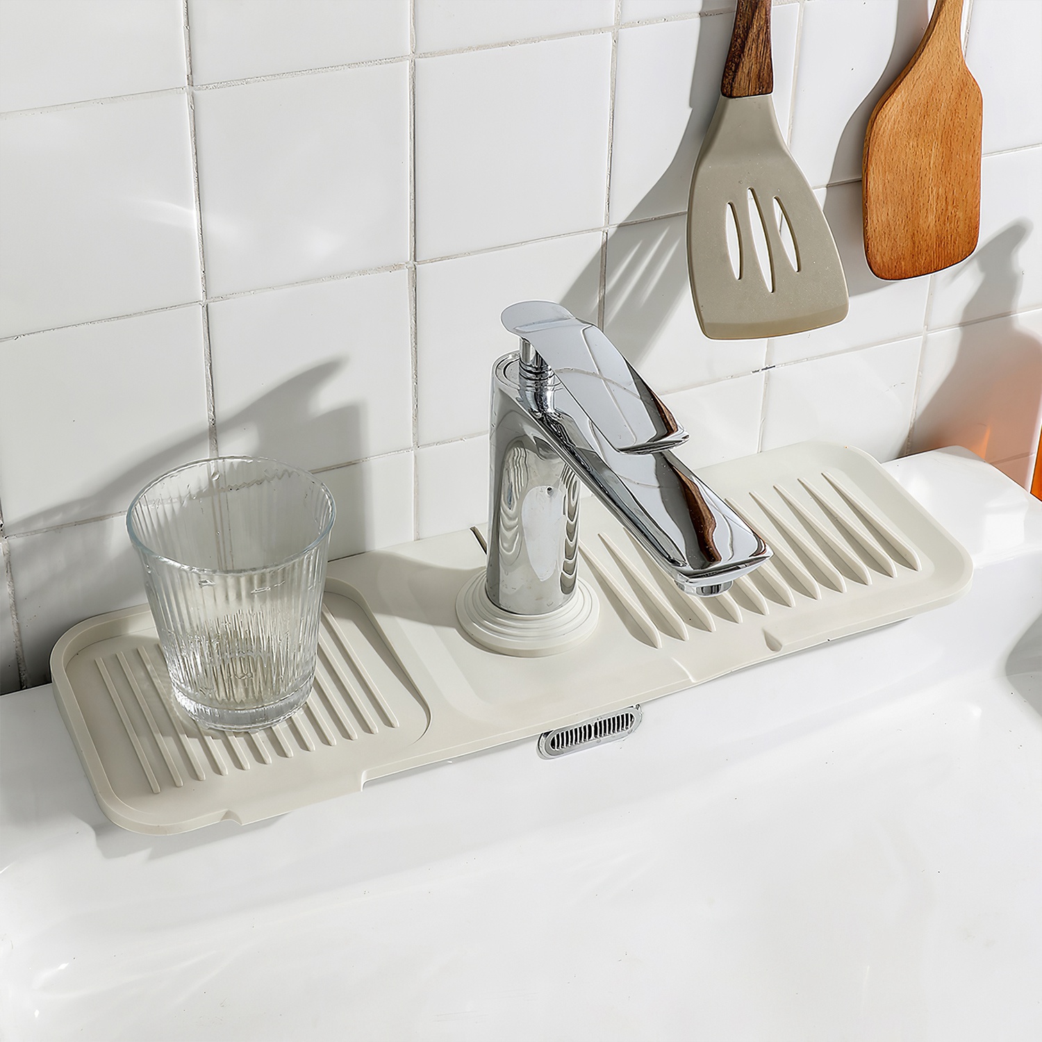 Home > Faucet Splash Mat 14.56x5.51in Silicone Sink Drying Mat Water Drip Catching Tray Water Drainage Pad Sponge Soap Holder for Kitchen Bathroom Sink Fauce